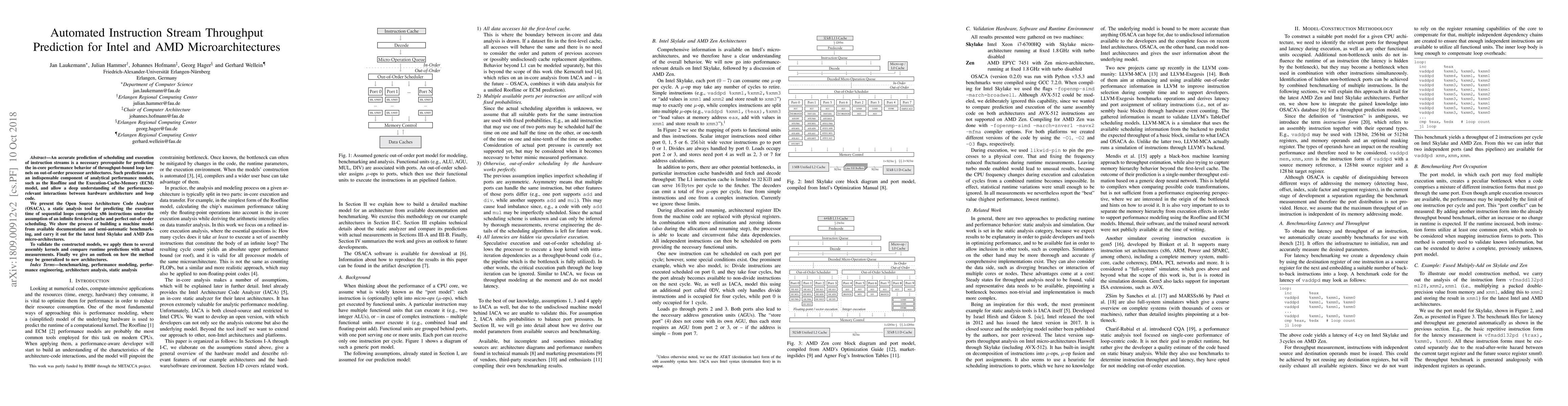 This paper introduces OSACA, a static analysis tool for predicting the throughput of instruction streams on Intel and AMD processors, validated against the latest microarchitectures. The tool aims to enhance analytical performance models by providing accurate execution time predictions for sequential loops.