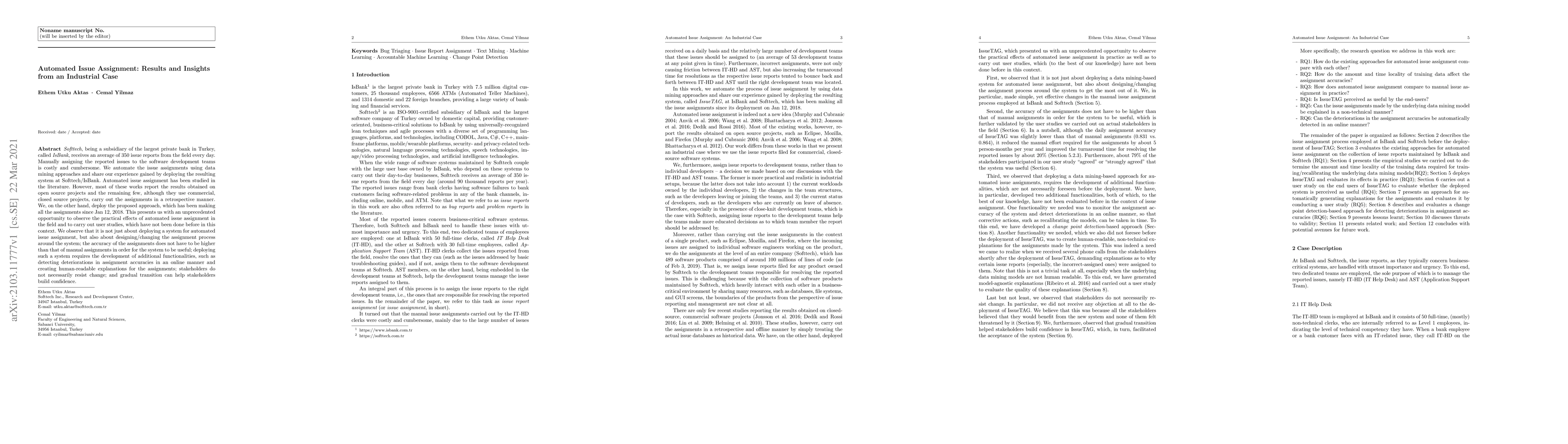This industrial case study demonstrates the practical implementation and impact of automated issue assignment in a large-scale banking environment, providing insights into designing, deploying, and improving such systems.