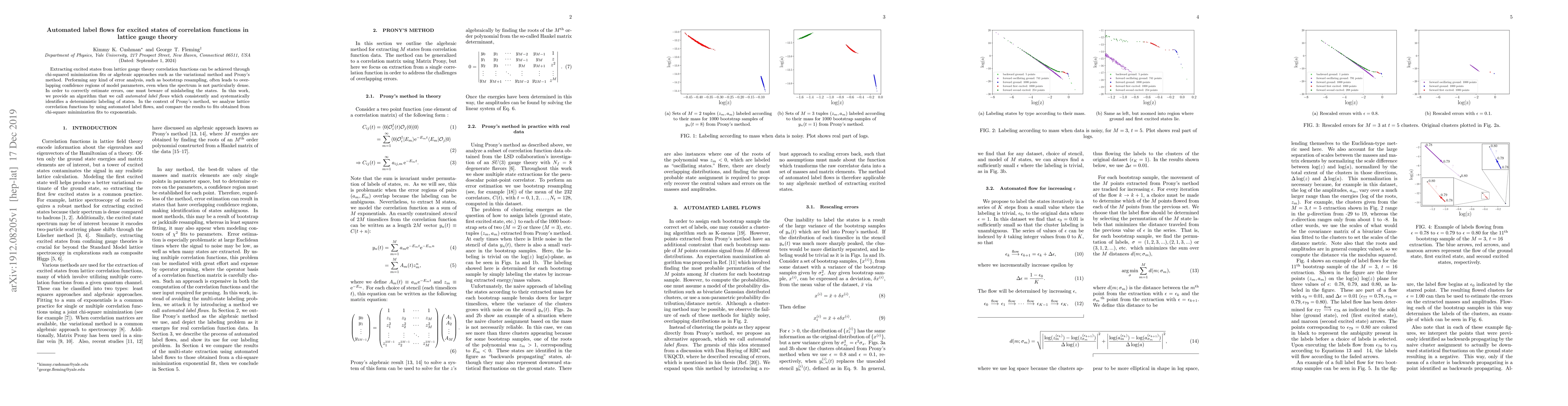 Extracting excited states from lattice gauge theory correlation functions can be achieved through chi-squared minimization fits or algebraic approaches such as the variational method and Prony's method. Performing any kind of error analysis, such as bootstrap resampling, often leads to overlapping confidence regions of model parameters, even when the spectrum is not particularly dense. In order to correctly estimate errors, one must beware of mislabeling the states. In this work, we provide an algorithm that we call automated label flows which consistently and systematically identifies a deterministic labeling of states. In the context of Prony's method, we analyze lattice correlation functions by using automated label flows, and compare the results to fits obtained from chi-square minimization fits to exponentials.
