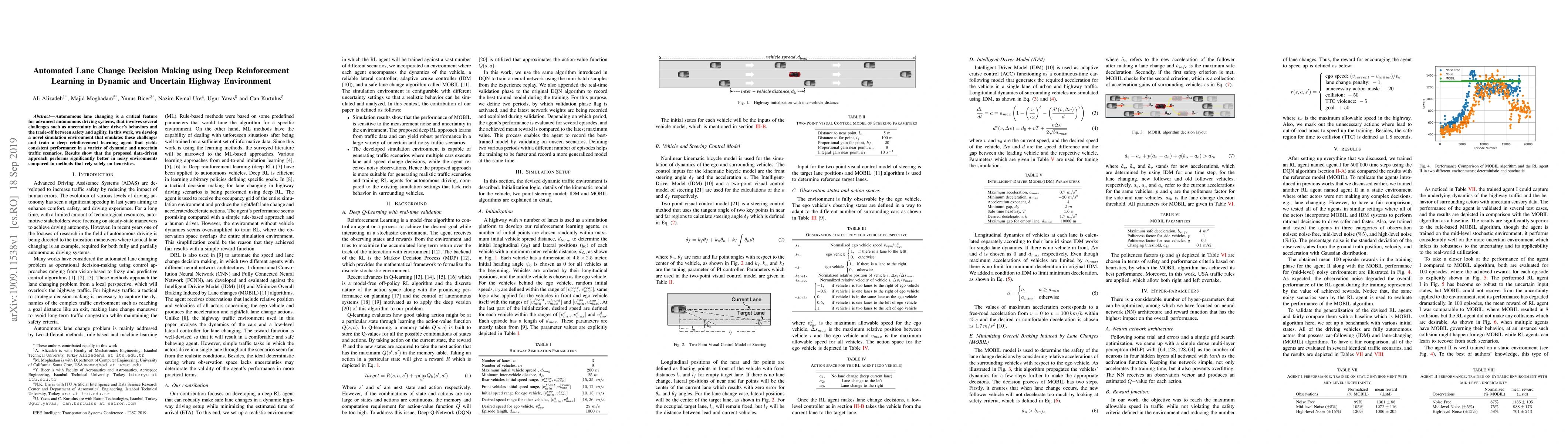 Researchers developed a deep reinforcement learning agent to automate lane changing in dynamic highway environments, outperforming heuristic methods in noisy conditions.