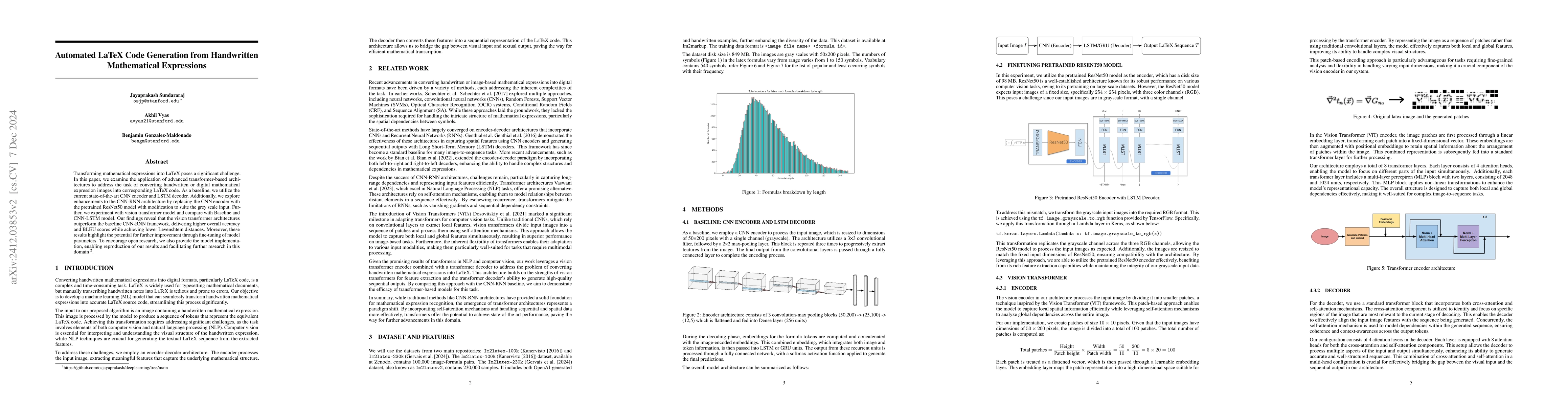 This paper investigates the conversion of handwritten and digital math expressions into LaTeX using transformer-based models. It finds that transformer architectures outperform baseline CNN/RNN models, achieving higher accuracy and lower error scores, with potential for further improvement through fine-tuning.
