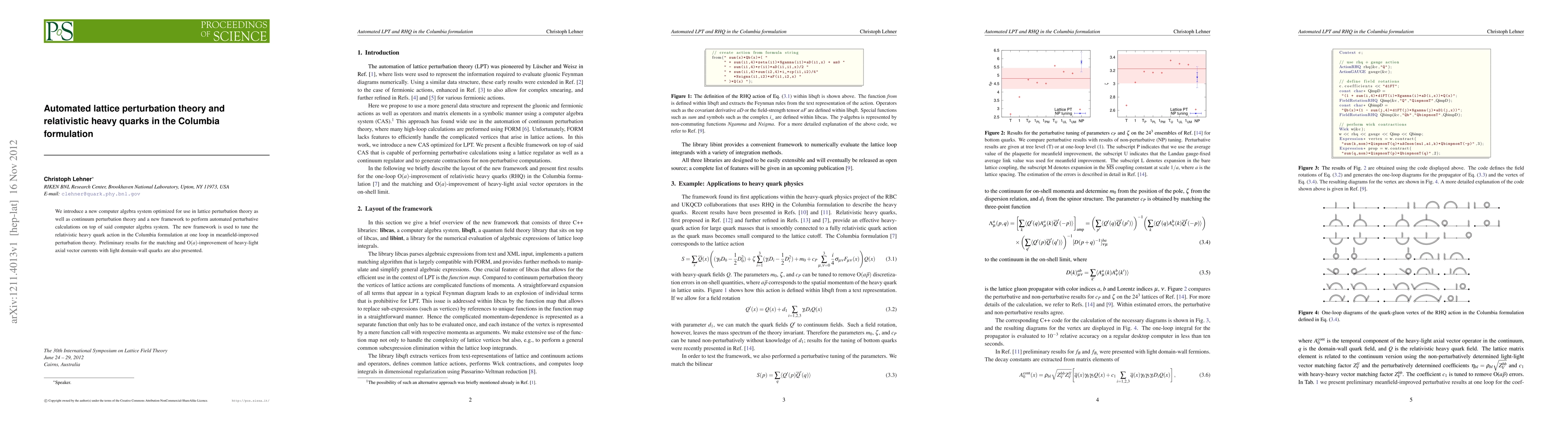 We introduce a new computer algebra system optimized for use in lattice perturbation theory as well as continuum perturbation theory and a new framework to perform automated perturbative calculations on top of said computer algebra system. The new framework is used to tune the relativistic heavy quark action in the Columbia formulation at one loop in meanfield-improved perturbation theory. Preliminary results for the matching and O(a)-improvement of heavy-light axial vector currents with light domain-wall quarks are also presented.