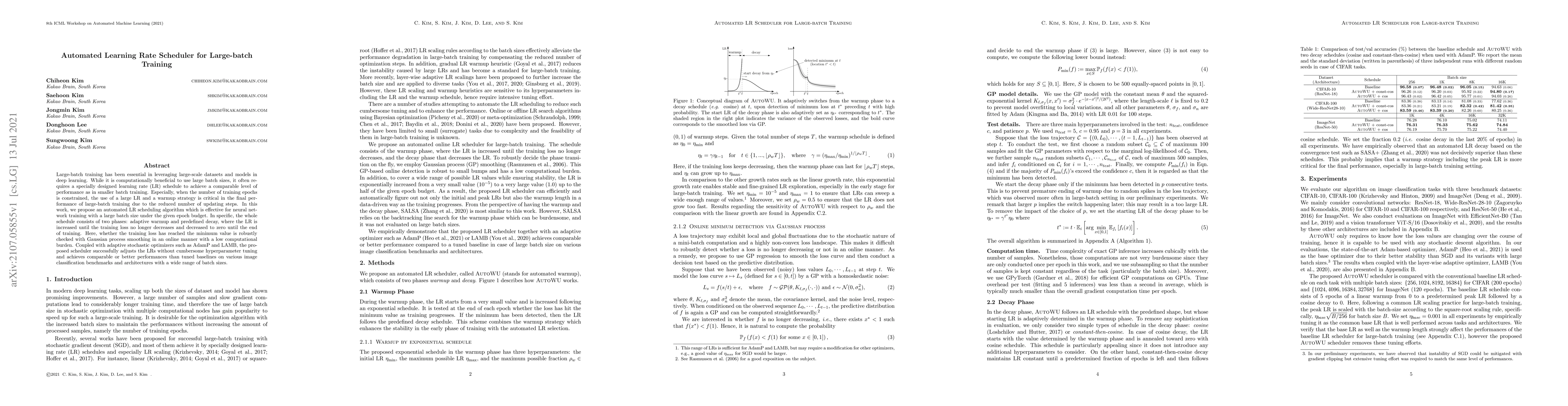 This paper proposes an automated learning rate scheduler for large-batch training that includes adaptive warmup and predefined decay phases, effectively adjusting learning rates without manual tuning. The method achieves comparable or superior performance on various image classification tasks across different batch sizes.