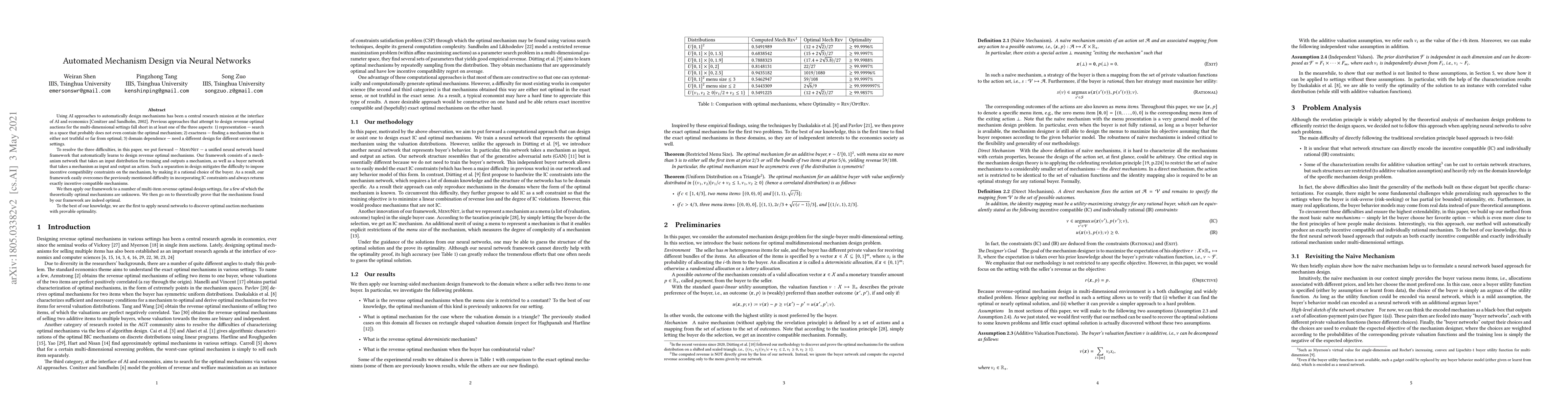 Researchers developed a neural network framework called MenuNet to design revenue-optimal mechanisms for auctions, overcoming previous limitations in representation, exactness, and domain dependence, and proving the optimality of their solutions.