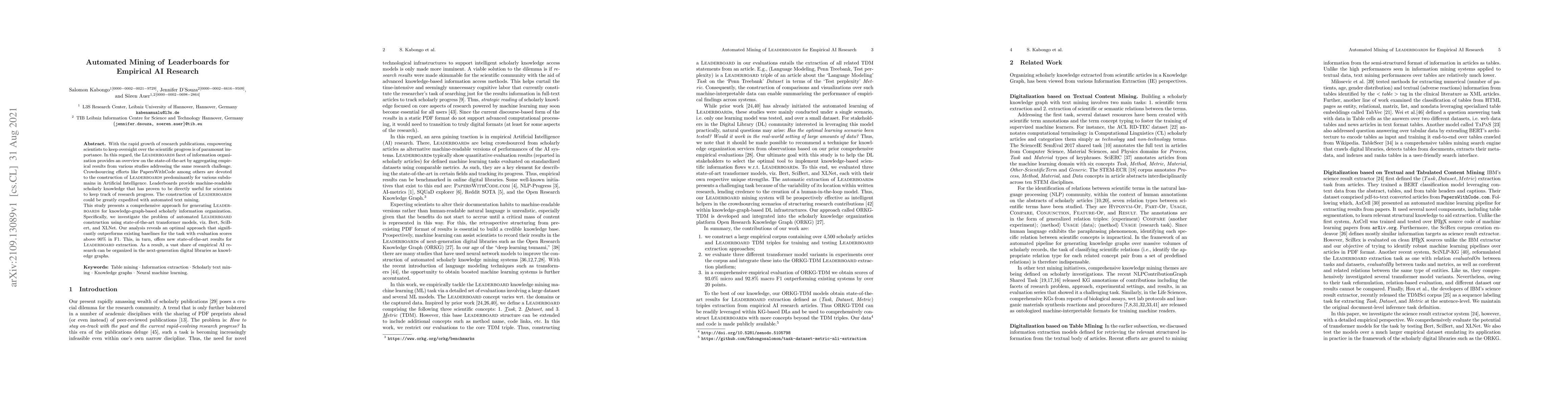 Researchers developed an automated method to create leaderboards for AI research using transformer models, achieving high accuracy scores and paving the way for more efficient organization of empirical AI research.
