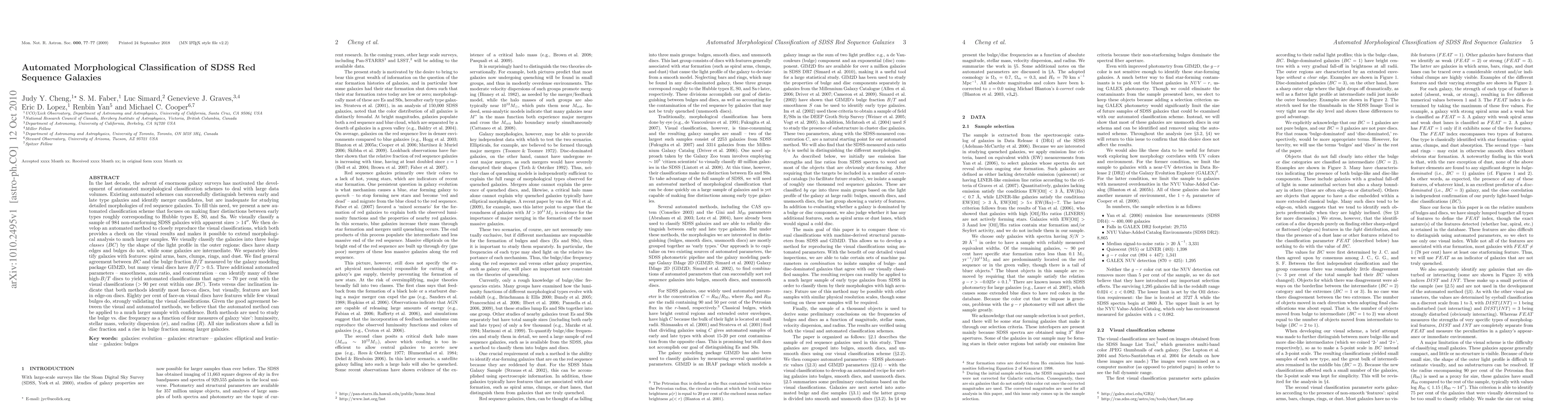 A novel visual-based morphological classification scheme for red sequence galaxies based on SDSS images was developed.