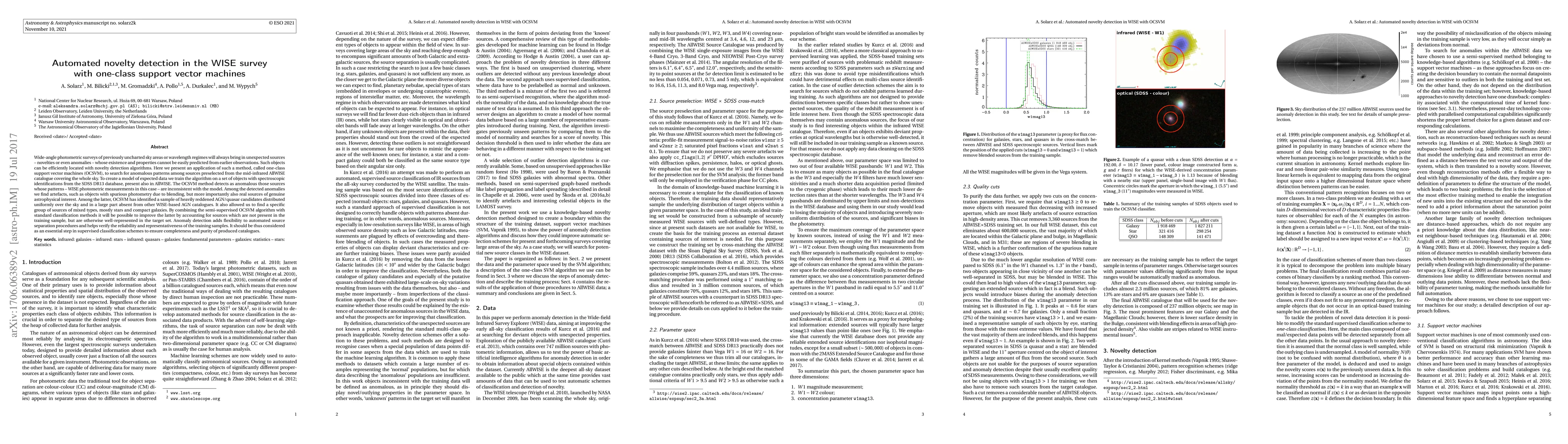 Wide-angle photometric surveys of previously uncharted sky areas or wavelength regimes will always bring in unexpected sources whose existence and properties cannot be easily predicted from earlier observations: novelties or even anomalies. Such objects can be efficiently sought for with novelty detection algorithms. Here we present an application of such a method, called one-class support vector machines (OCSVM), to search for anomalous patterns among sources preselected from the mid-infrared AllWISE catalogue covering the whole sky. To create a model of expected data we train the algorithm on a set of objects with spectroscopic identifications from the SDSS DR13 database, present also in AllWISE. OCSVM detects as anomalous those sources whose patterns - WISE photometric measurements in this case - are inconsistent with the model. Among the detected anomalies we find artefacts, such as objects with spurious photometry due to blending, but most importantly also real sources of genuine astrophysical interest. Among the latter, OCSVM has identified a sample of heavily reddened AGN/quasar candidates distributed uniformly over the sky and in a large part absent from other WISE-based AGN catalogues. It also allowed us to find a specific group of sources of mixed types, mostly stars and compact galaxies. By combining the semi-supervised OCSVM algorithm with standard classification methods it will be possible to improve the latter by accounting for sources which are not present in the training sample but are otherwise well-represented in the target set. Anomaly detection adds flexibility to automated source separation procedures and helps verify the reliability and representativeness of the training samples. It should be thus considered as an essential step in supervised classification schemes to ensure completeness and purity of produced catalogues.