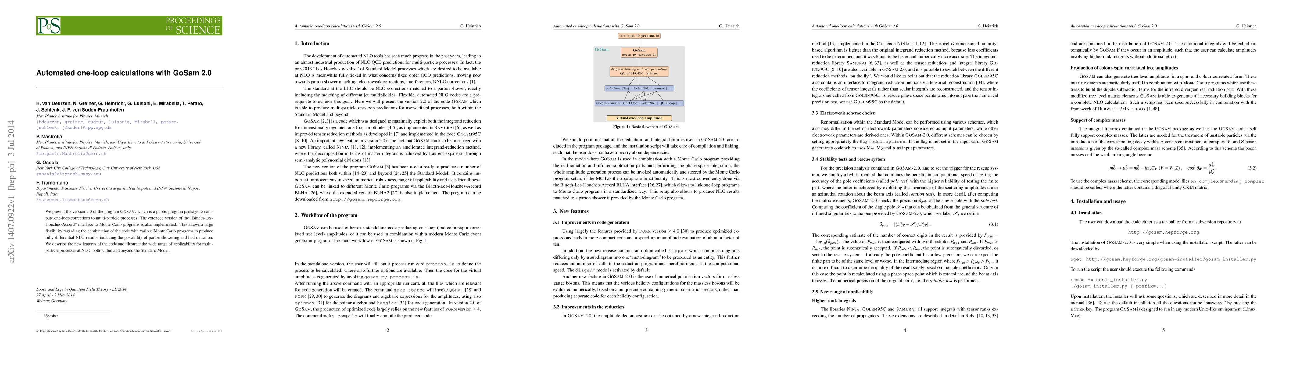 GoSam 2.0 is a public program for computing one-loop corrections in multi-particle processes, featuring an extended interface for combining with Monte Carlo programs for differential NLO results, including parton showering and hadronisation. It showcases new capabilities and broad applicability for both Standard Model and beyond processes.