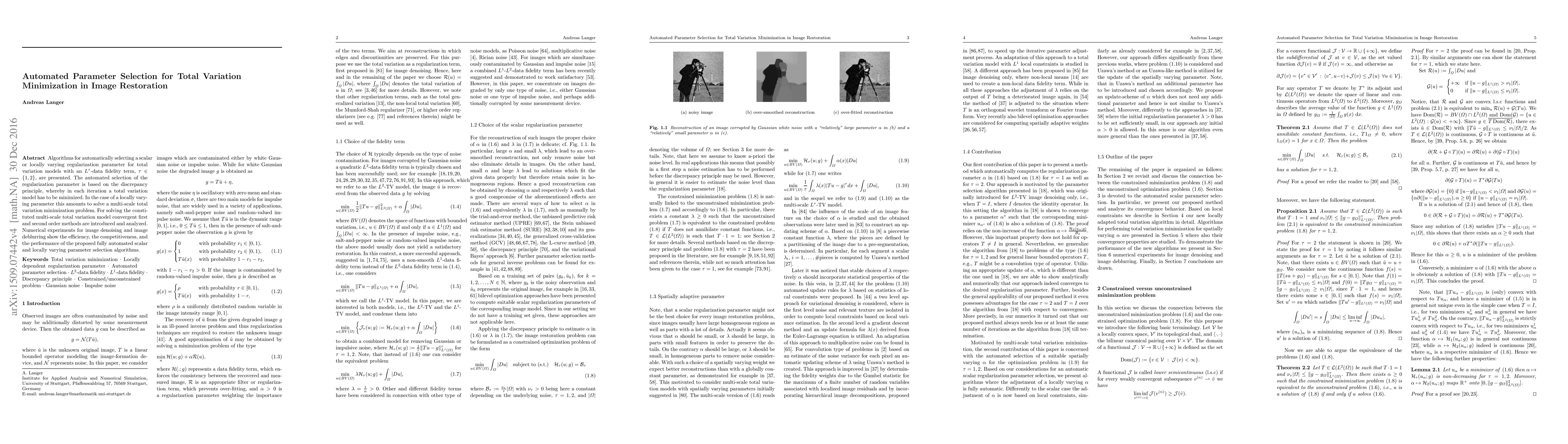 This paper presents algorithms for automatically selecting regularization parameters for total variation models in image restoration, based on the discrepancy principle. It introduces both convergent first and second order methods for solving multi-scale total variation minimization problems, demonstrating their efficiency through numerical experiments in image denoising and deblurring.