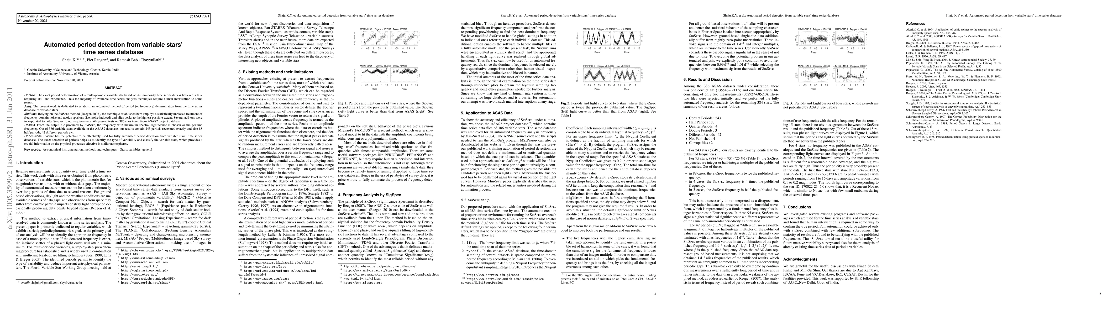Researchers developed an automated method to detect periods in variable stars using time series data, recovering 243 exact periods and 88 half periods from 386 stars.