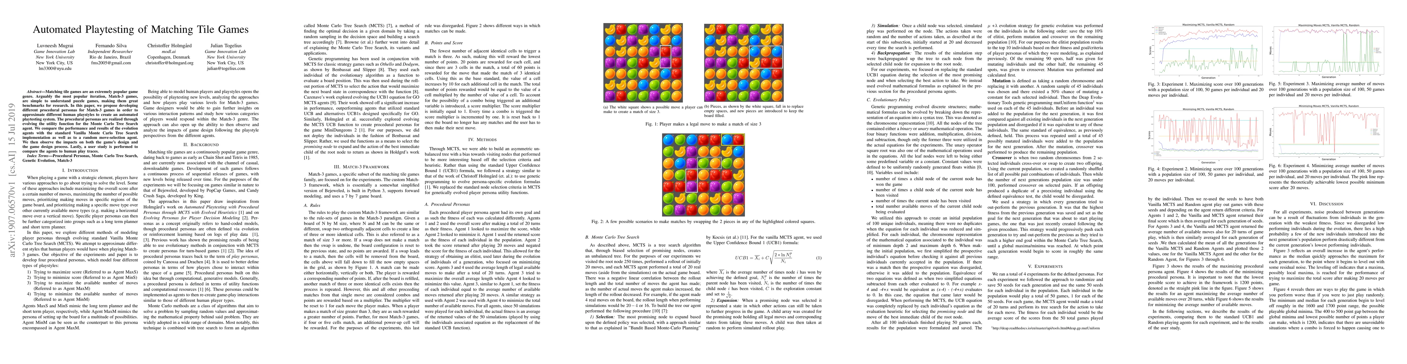A genetic algorithm was used to evolve mathematical equations representing various play-styles for Match-3 games.