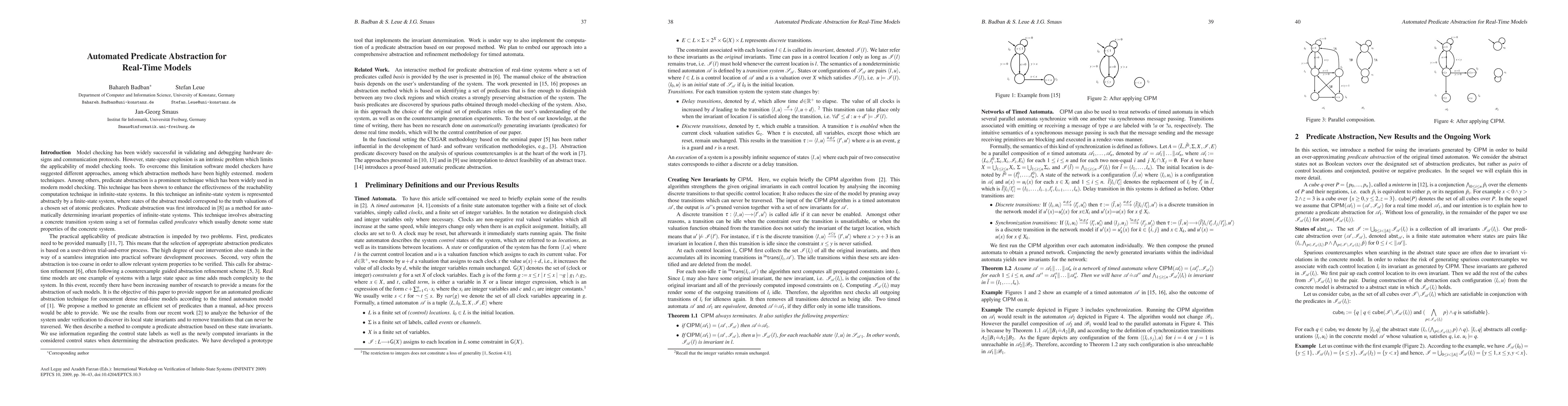 The novelty of this work lies in the application of the CIPM algorithm for automated predicate abstraction of dense real-timed models, and the representation of abstract states as pairs of control locations and predicates, which reduces the risk of spurious counterexamples.