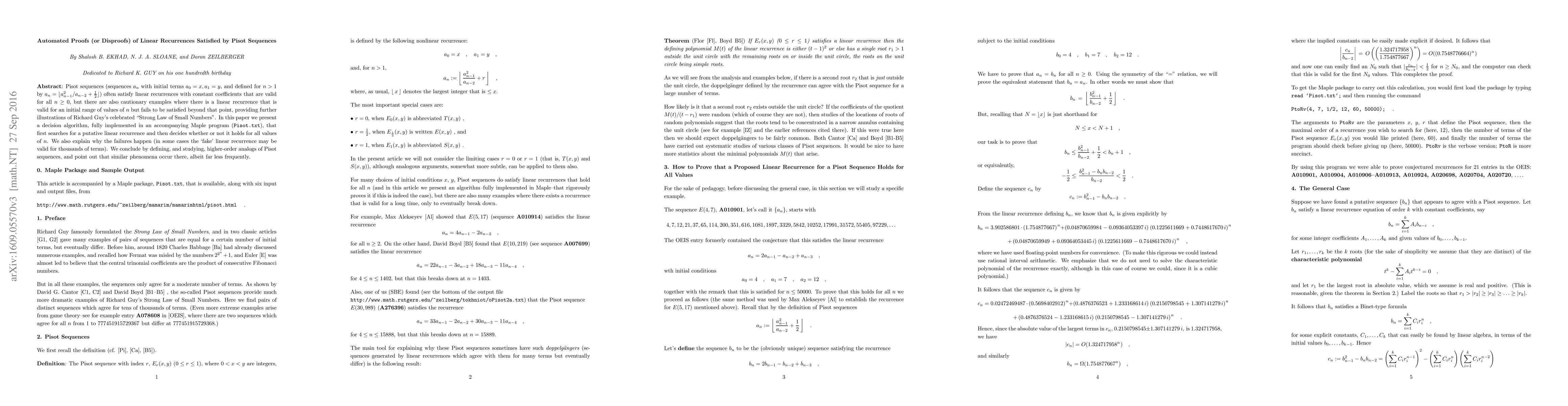 This paper presents an algorithm to automatically verify or disprove linear recurrences for Pisot sequences, which often satisfy such recurrences but can exhibit exceptions. The algorithm, implemented in Maple, also explains instances where recurrences appear valid for many terms but fail eventually, highlighting phenomena akin to Richard Guy's "Strong Law of Small Numbers." The work concludes with an exploration of higher-order analogs of Pisot sequences.