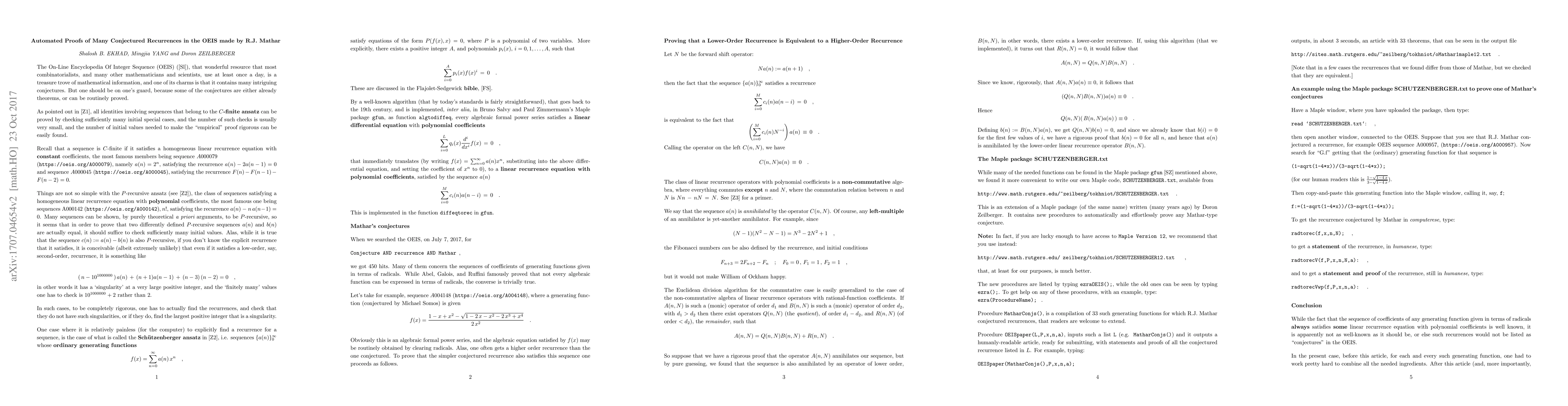 Researchers created a method to prove conjectures in the On-Line Encyclopedia Of Integer Sequences (OEIS) using linear recurrences, providing rigorously-proved theorems for previously unproven conjectures.