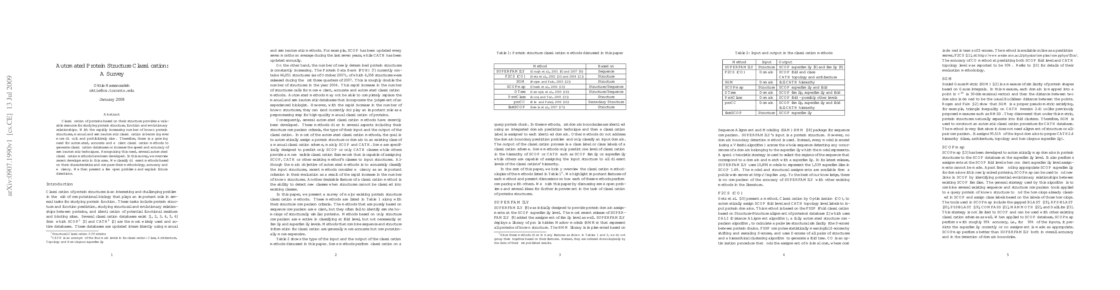 This paper surveys recent advancements in automated protein structure classification methods, comparing their methodologies, accuracy, and efficiency to address the growing need for faster and more accurate classification in the face of increasing protein structure data. It also highlights open problems and future research directions.
