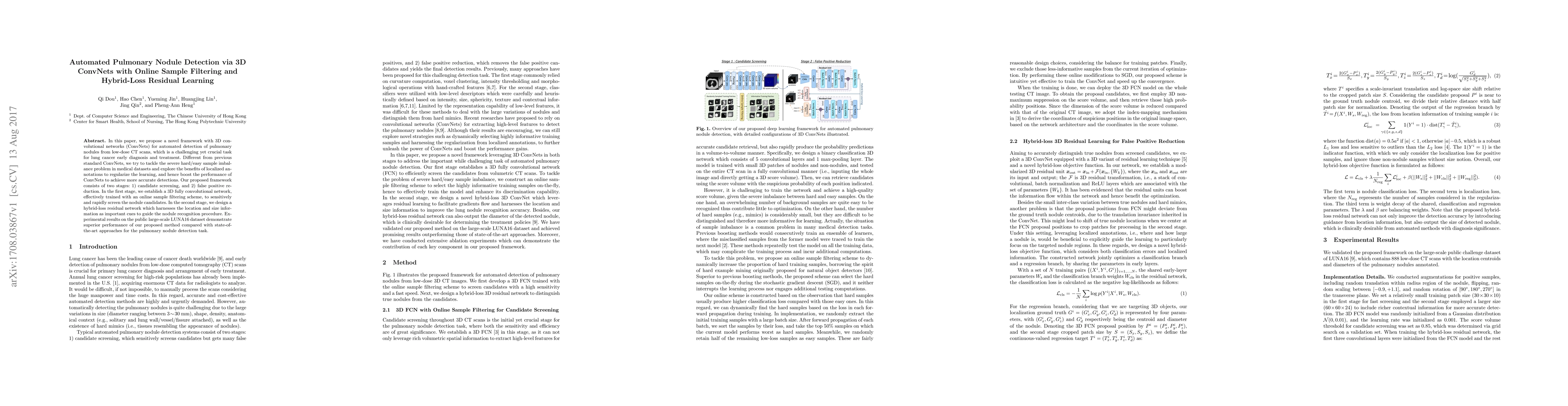 A new method uses 3D ConvNets to detect pulmonary nodules in low-dose CT scans with improved accuracy through online sample filtering and hybrid-loss residual learning.