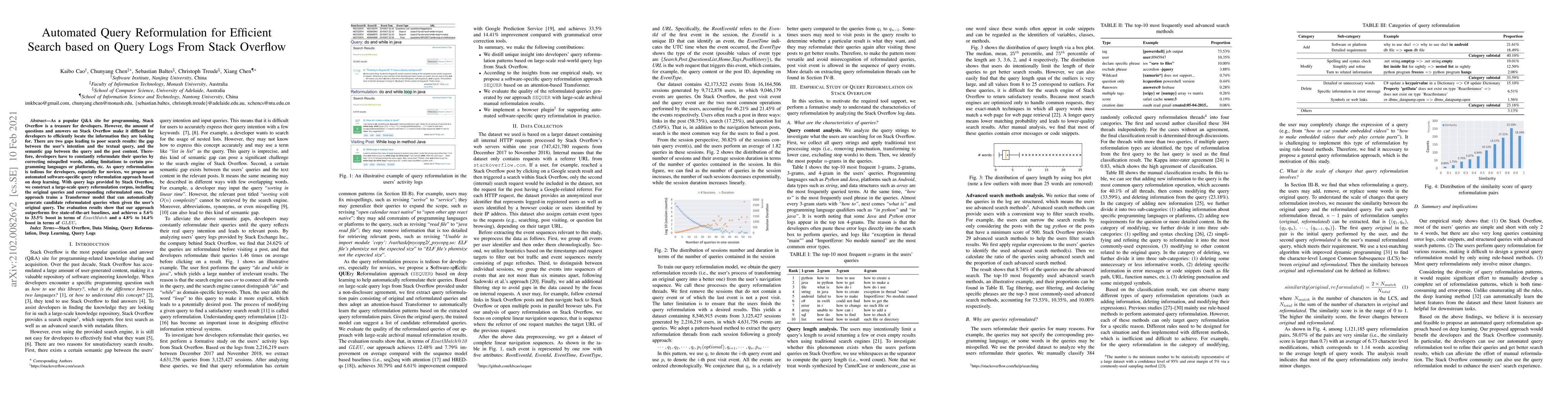 This paper proposes an automated query reformulation method using deep learning to improve search efficiency on Stack Overflow. The approach trains a Transformer model on a large-scale query reformulation corpus derived from Stack Overflow logs, achieving significant improvements over state-of-the-art baselines in reformulating queries to better match user intentions and post content.