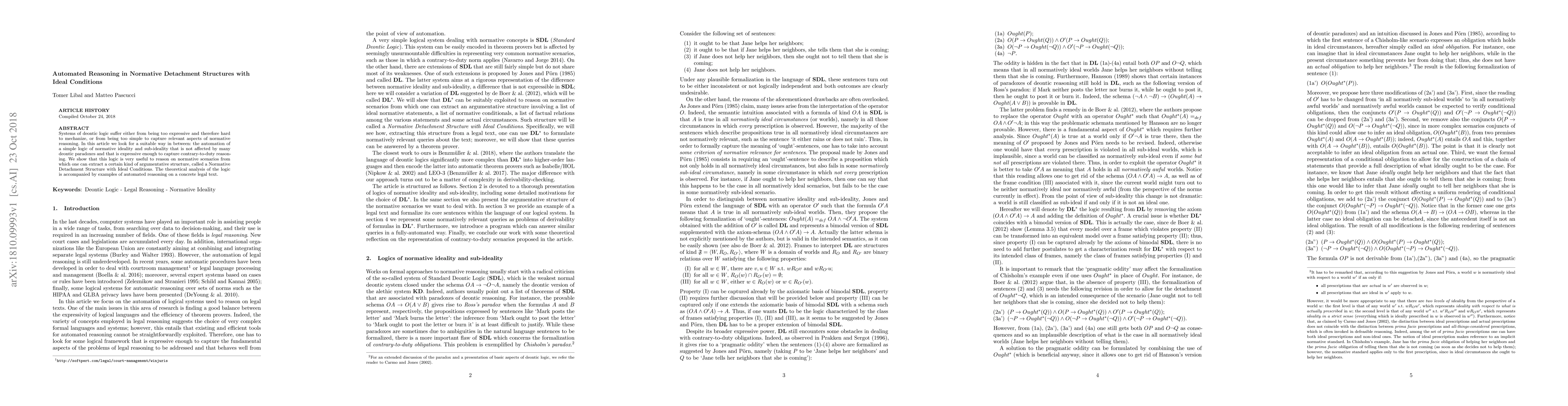 Systems of deontic logic suffer either from being too expressive and therefore hard to mechanize, or from being too simple to capture relevant aspects of normative reasoning. In this article we look for a suitable way in between: the automation of a simple logic of normative ideality and sub-ideality that is not affected by many deontic paradoxes and that is expressive enough to capture contrary-to-duty reason- ing. We show that this logic is very useful to reason on normative scenarios from which one can extract a certain kind of argumentative structure, called a Normative Detachment Structure with Ideal Conditions. The theoretical analysis of the logic is accompanied by examples of automated reasoning on a concrete legal text.