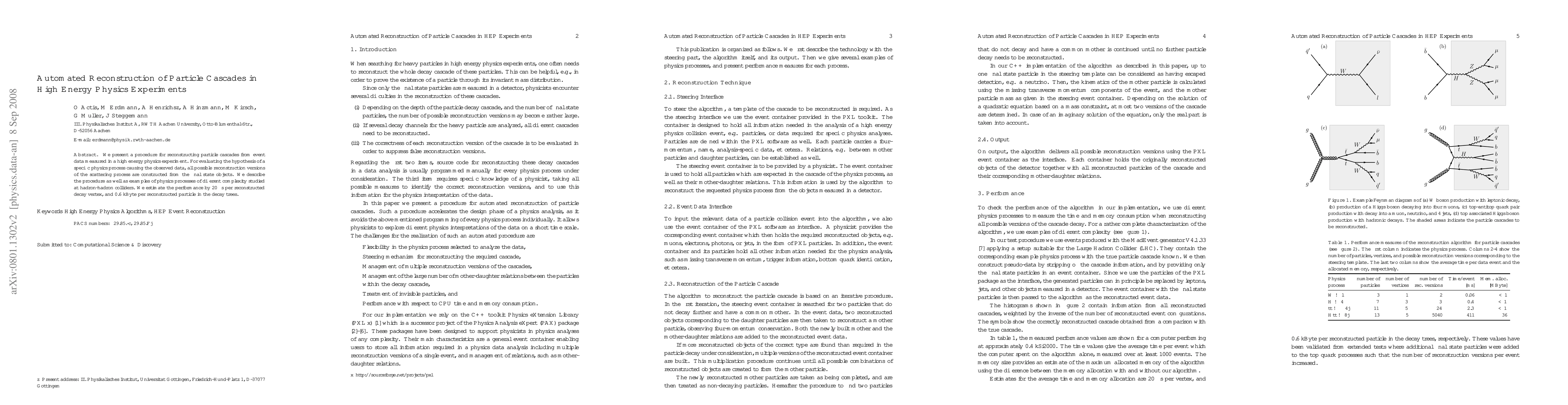 This paper introduces an automated method for reconstructing particle cascades from high energy physics experiment data, evaluating various hypotheses for specific physics processes. The procedure achieves a performance of 20 microseconds per decay vertex and 0.6 kByte per particle in decay trees.
