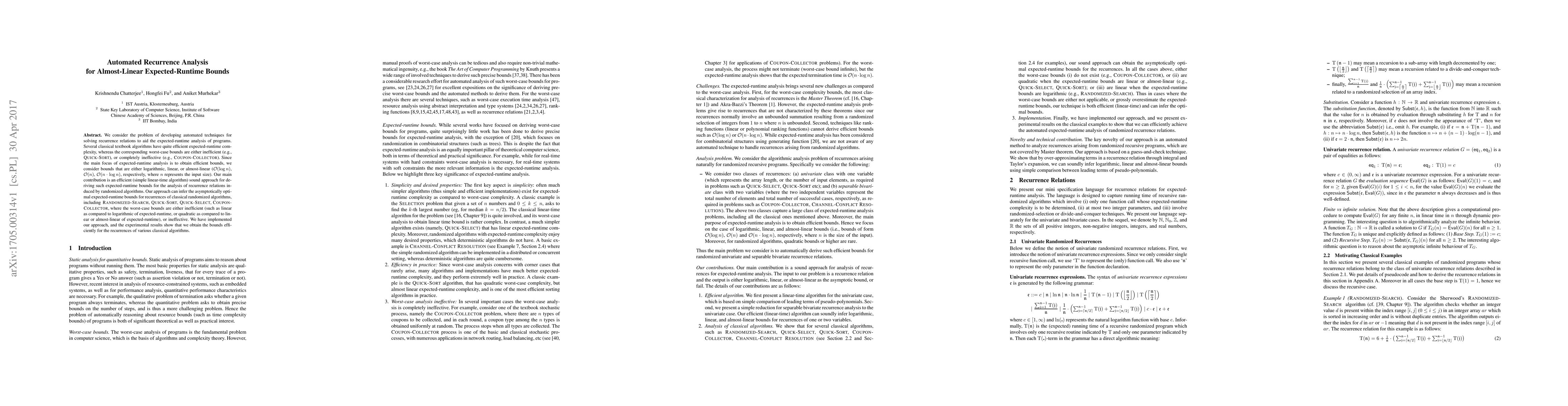 This paper presents a linear-time algorithm for deriving efficient expected-runtime bounds for recurrence relations in randomized algorithms, focusing on logarithmic, linear, or almost-linear bounds. The method efficiently infers optimal expected-runtime bounds for classical algorithms like QUICK-SORT and COUPON-COLLECTOR, where worst-case bounds are inefficient or ineffective.