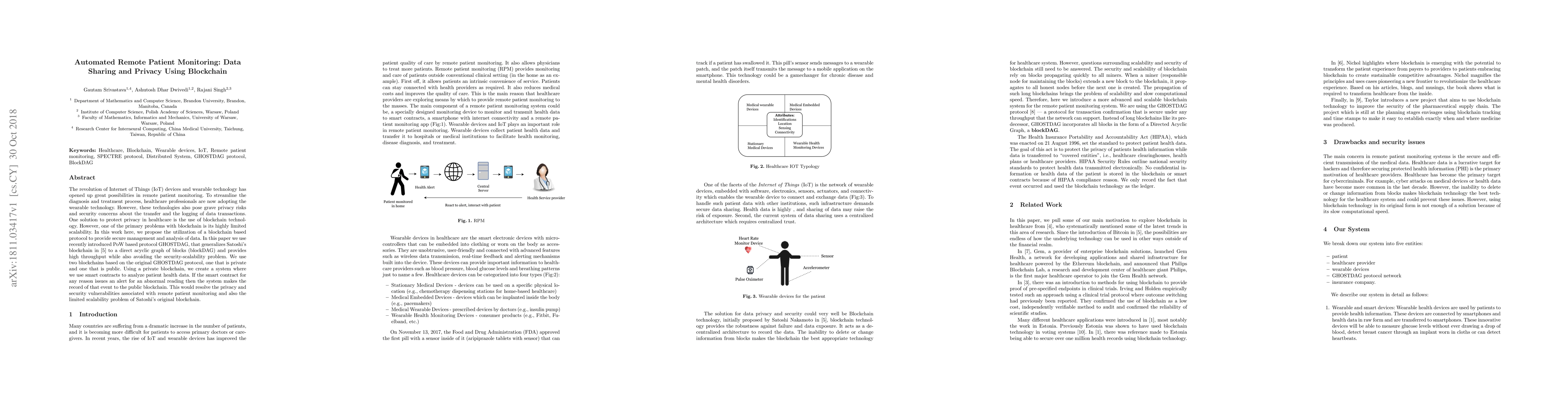 This work stands out by combining blockchain technology with remote patient monitoring, specifically addressing privacy and scalability concerns through the innovative use of GHOSTDAG protocol and smart contracts.