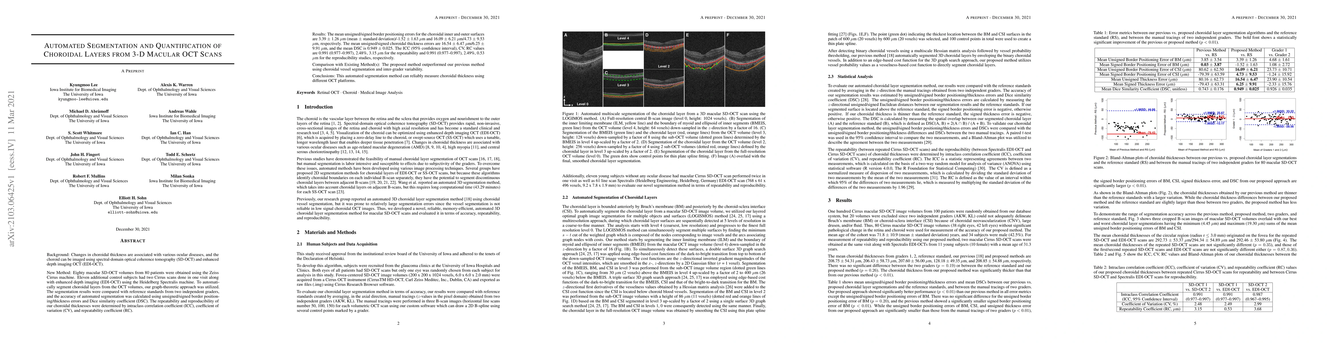 A new automated method for segmenting choroidal layers from 3D OCT scans shows high accuracy with minimal errors, outperforming previous methods in reliability and reproducibility.