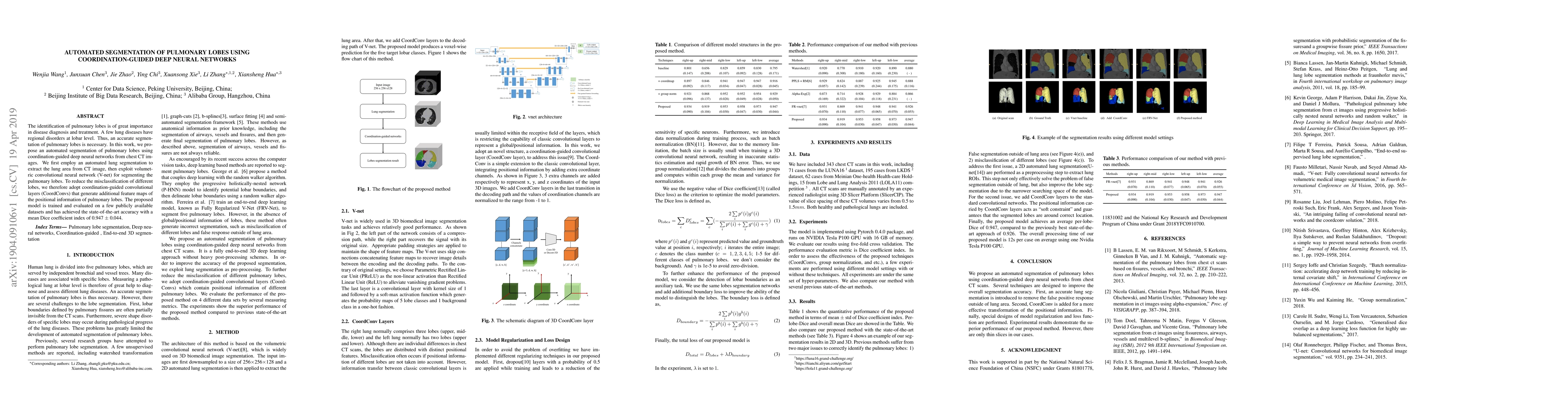 This paper proposes an automated method for segmenting pulmonary lobes using coordination-guided deep neural networks from chest CT images. The method employs volumetric convolutional neural networks to achieve state-of-the-art accuracy with a mean Dice coefficient of 0.947 $\pm$ 0.044.