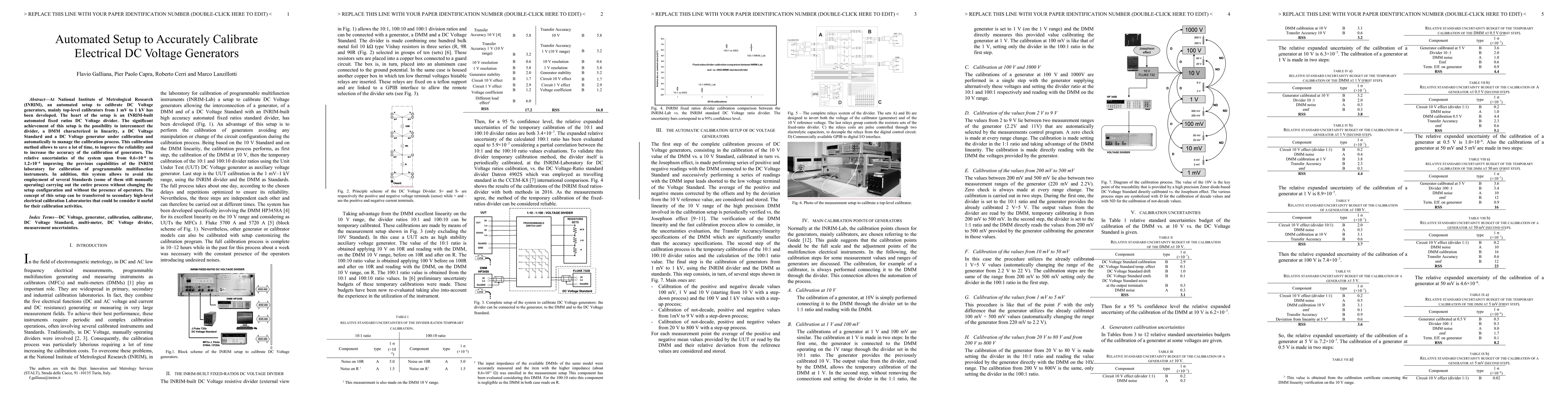 The INRIM has developed an automated setup to calibrate DC Voltage generators from 1 mV to 1 kV, featuring an automated fixed ratios voltage divider, which significantly enhances calibration efficiency, reliability, and accuracy. The system's relative uncertainties range from 0.6x10^-6 to 1.2x10^-4, and it can operate without manual intervention.
