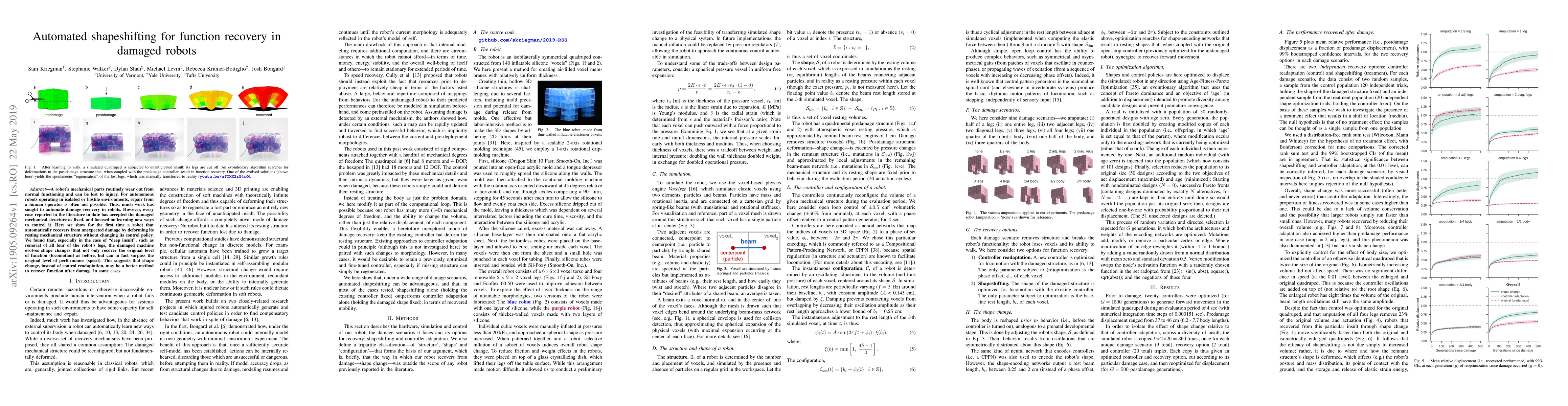 A robot can automatically recover from damage by deforming its mechanical structure without changing its control policy, surpassing original performance levels in some cases.