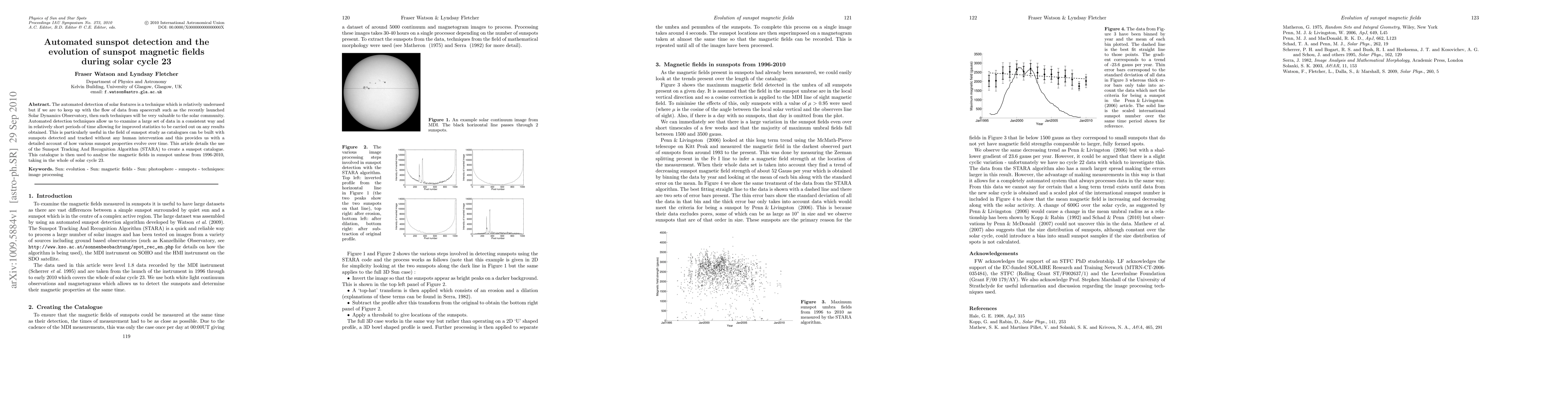 This paper employs the Sunspot Tracking And Recognition Algorithm (STARA) to automatically detect and track sunspots, creating a comprehensive sunspot catalogue. The study analyzes the evolution of sunspot magnetic fields over solar cycle 23 from 1996-2010, providing detailed insights into sunspot properties and their magnetic characteristics.