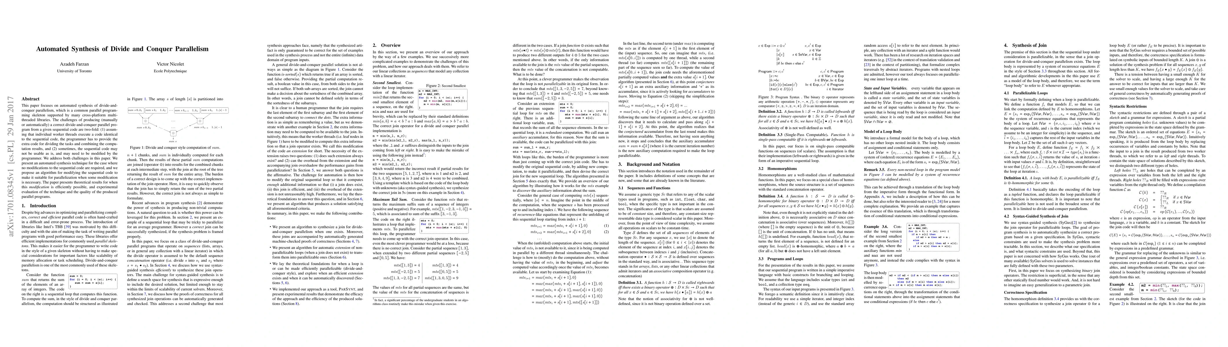 This paper presents an automated synthesis technique for generating divide-and-conquer parallel programs from sequential code, addressing challenges related to task division, computation combination, and code modification, supported by theoretical and experimental evaluations.