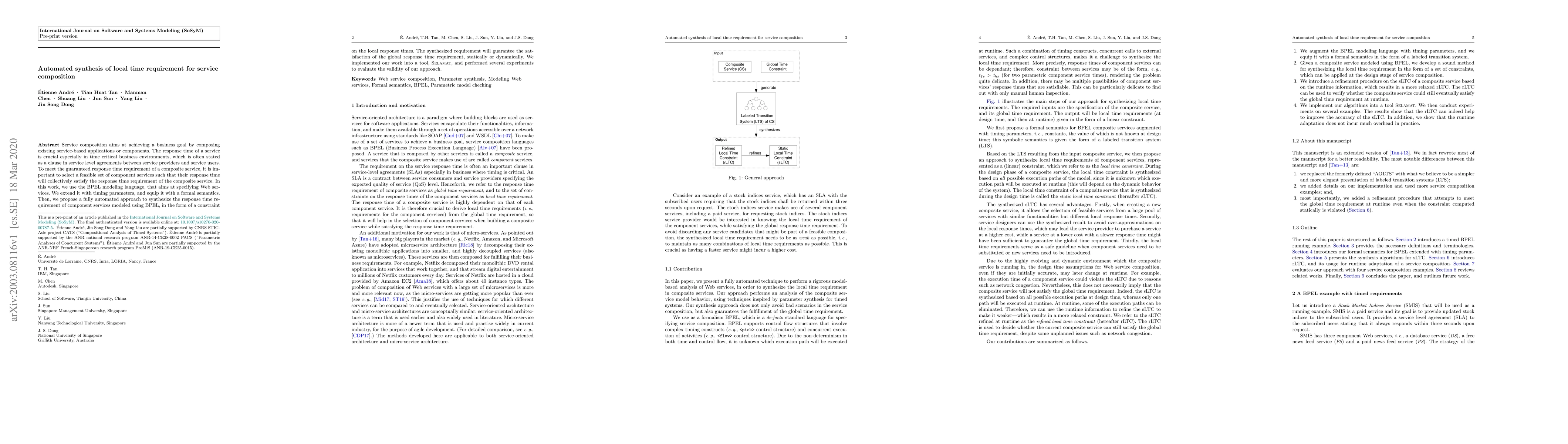This paper proposes an automated method for synthesizing local time requirements for service composition using BPEL with extended timing parameters. The approach guarantees that the composite service's response time is met by dynamically or statically enforcing constraints on component services' response times, validated through the implementation of the Selamat tool.