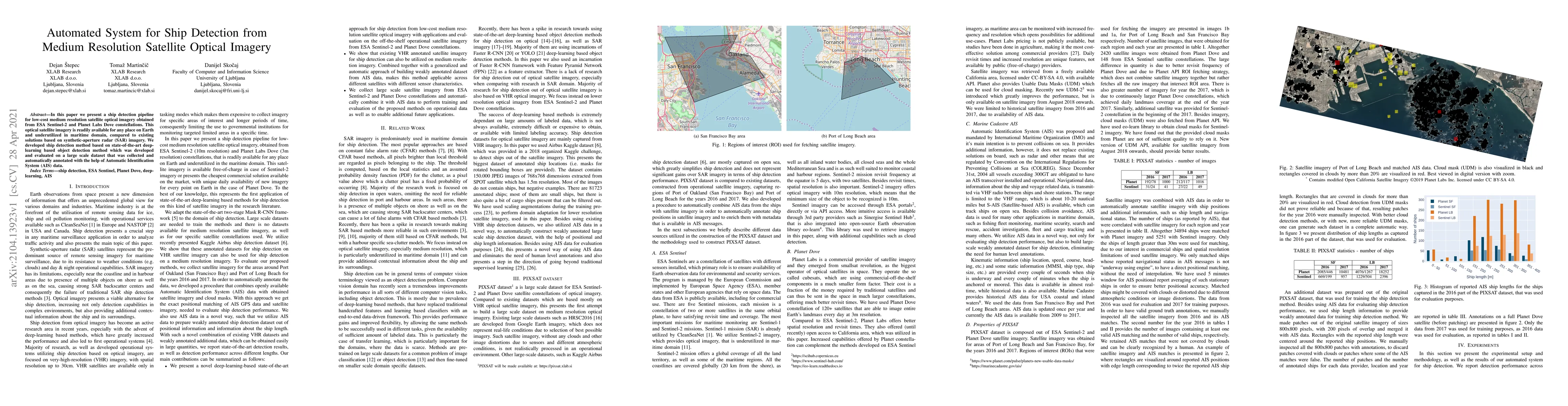 This paper introduces a cost-effective ship detection system using medium resolution satellite optical imagery from Sentinel-2 and Dove constellations, leveraging a deep-learning-based object detection method evaluated on a dataset annotated with Automatic Identification System (AIS) data. The approach aims to utilize readily available satellite imagery for maritime applications.