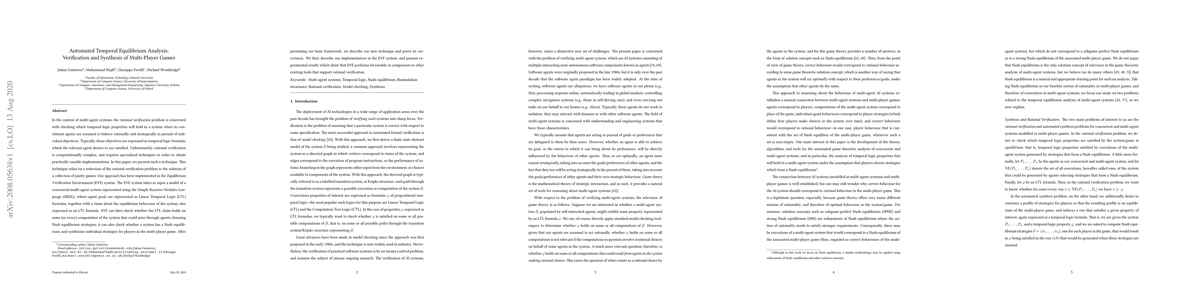 In the context of multi-agent systems, the rational verification problem is concerned with checking which temporal logic properties will hold in a system when its constituent agents are assumed to behave rationally and strategically in pursuit of individual objectives. Typically, those objectives are expressed as temporal logic formulae which the relevant agent desires to see satisfied. Unfortunately, rational verification is computationally complex, and requires specialised techniques in order to obtain practically useable implementations. In this paper, we present such a technique. This technique relies on a reduction of the rational verification problem to the solution of a collection of parity games. Our approach has been implemented in the Equilibrium Verification Environment (EVE) system. The EVE system takes as input a model of a concurrent/multi-agent system represented using the Simple Reactive Modules Language (SRML), where agent goals are represented as Linear Temporal Logic (LTL) formulae, together with a claim about the equilibrium behaviour of the system, also expressed as an LTL formula. EVE can then check whether the LTL claim holds on some (or every) computation of the system that could arise through agents choosing Nash equilibrium strategies; it can also check whether a system has a Nash equilibrium, and synthesise individual strategies for players in the multi-player game. After presenting our basic framework, we describe our new technique and prove its correctness. We then describe our implementation in the EVE system, and present experimental results which show that EVE performs favourably in comparison to other existing tools that support rational verification.