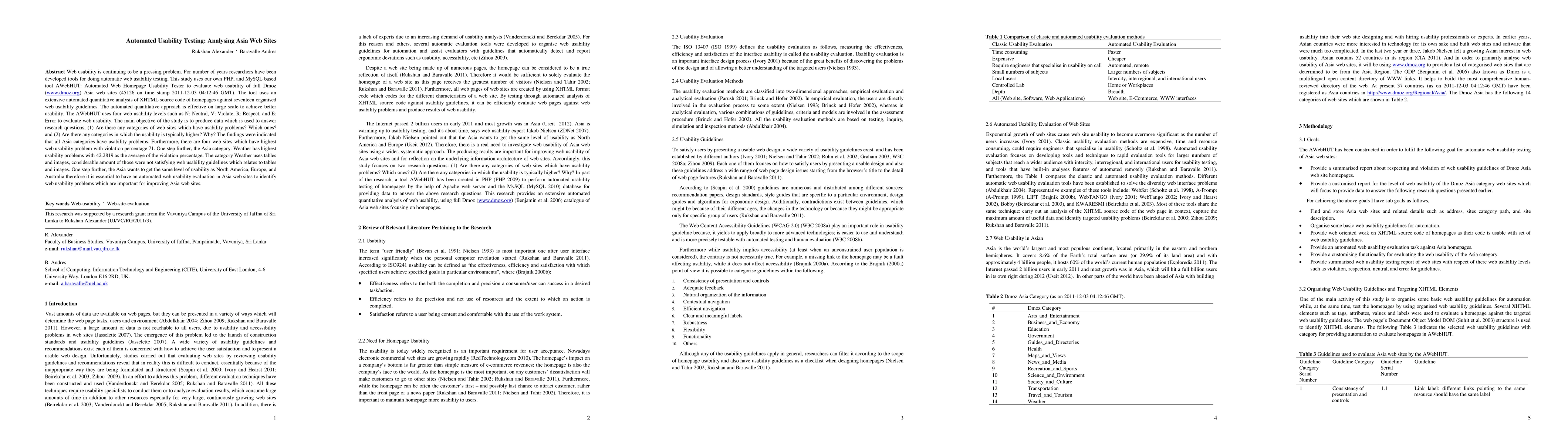 This study employs an automated PHP and MySQL tool, AWebHUT, to evaluate the web usability of 45,126 Asia-based websites against 17 web usability guidelines. The findings reveal that all Asia website categories have usability issues, with the Weather category showing the highest violation percentage, indicating a need for improved web usability standards in Asia.