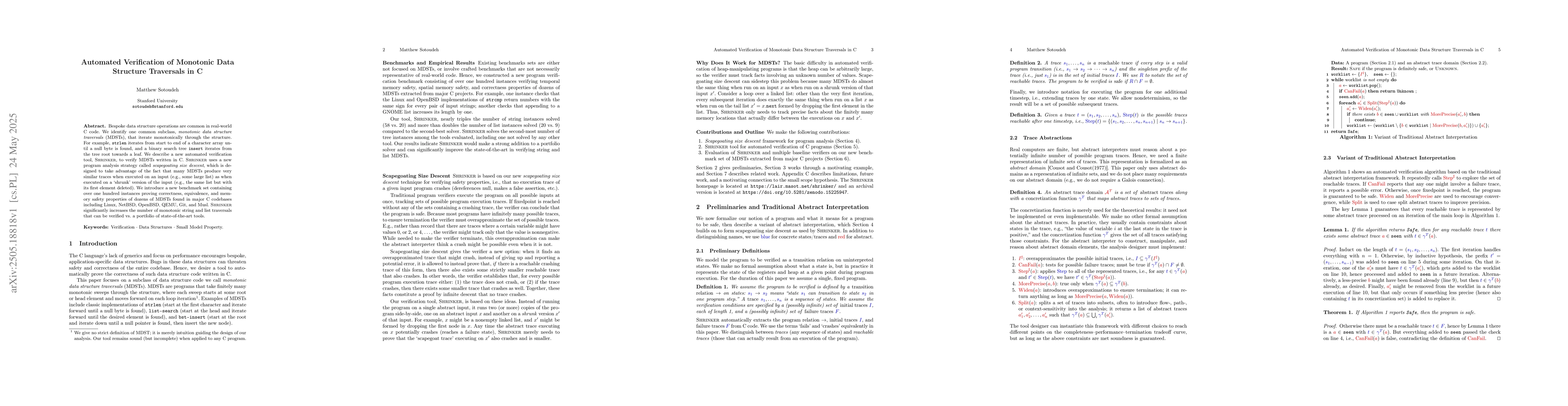 A new automated verification tool called Shrinker verifies monotonic data structure traversals in C, increasing the number of verified traversals compared to existing tools, with a focus on string and list traversals found in major codebases.