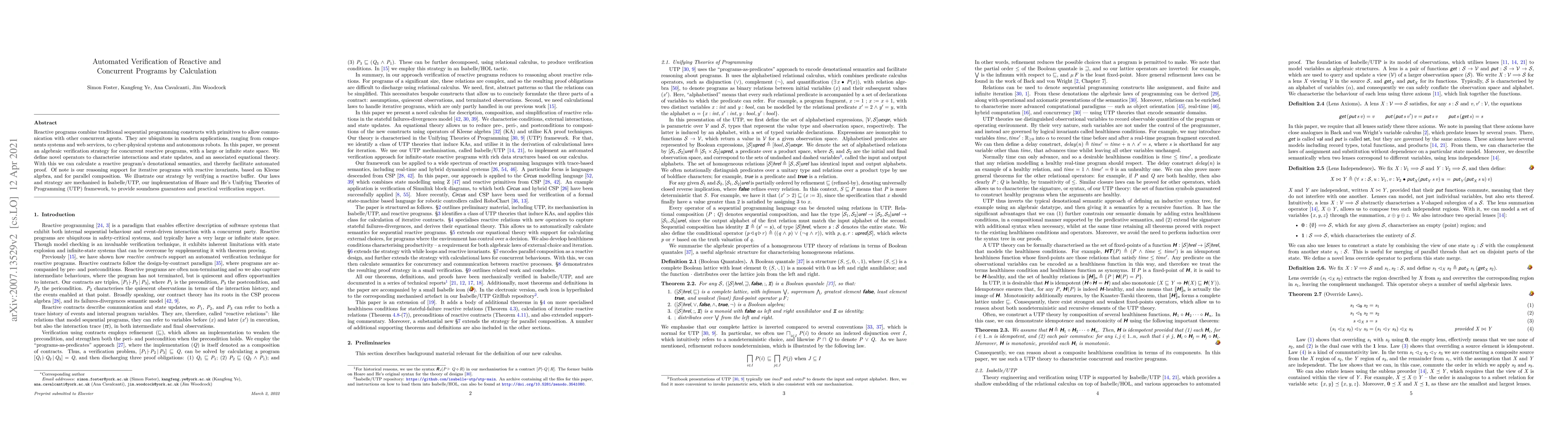 Reactive programs combine traditional sequential programming constructs with primitives to allow communication with other concurrent agents. They are ubiquitous in modern applications, ranging from components systems and web services, to cyber-physical systems and autonomous robots. In this paper, we present an algebraic verification strategy for concurrent reactive programs, with a large or infinite state space. We define novel operators to characterise interactions and state updates, and an associated equational theory. With this we can calculate a reactive program's denotational semantics, and thereby facilitate automated proof. Of note is our reasoning support for iterative programs with reactive invariants, based on Kleene algebra, and for parallel composition. We illustrate our strategy by verifying a reactive buffer. Our laws and strategy are mechanised in Isabelle/UTP, our implementation of Hoare and He's Unifying Theories of Programming (UTP) framework, to provide soundness guarantees and practical verification support.