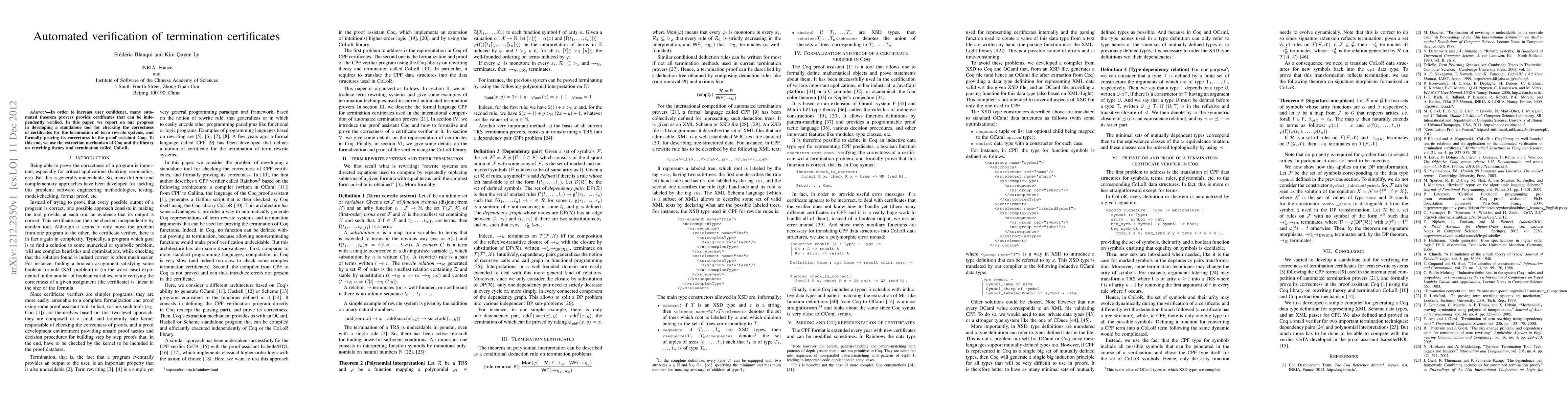 Researchers developed a standalone tool to verify termination certificates for term rewrite systems, using Coq's extraction mechanism and formal proof in the Coq proof assistant.