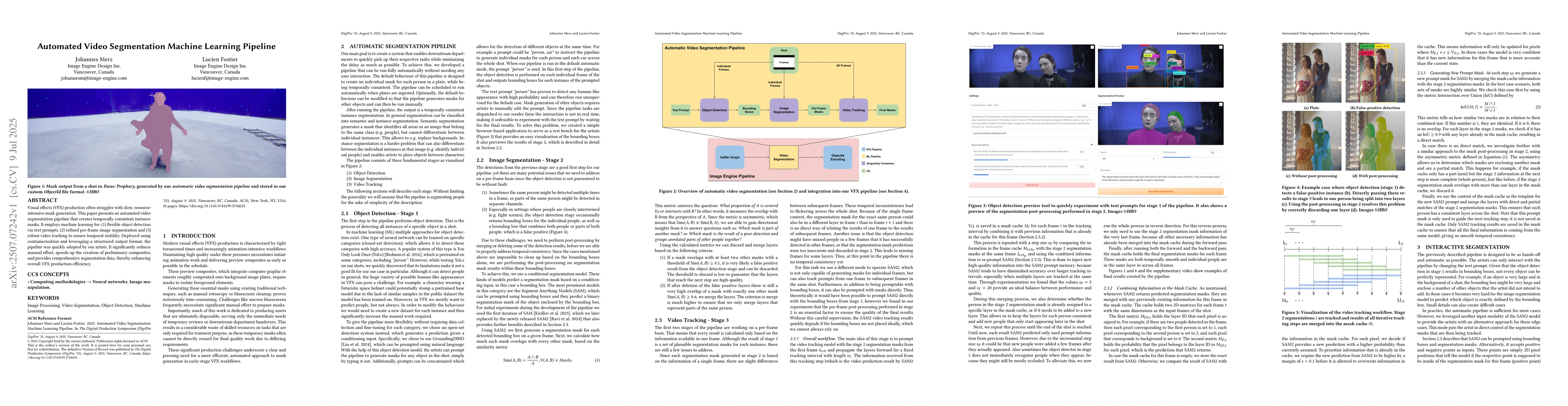 Visual effects (VFX) production often struggles with slow, resource-intensive mask generation. This paper presents an automated video segmentation pipeline that creates temporally consistent instance masks. It employs machine learning for: (1) flexible object detection via text prompts, (2) refined per-frame image segmentation and (3) robust video tracking to ensure temporal stability. Deployed using containerization and leveraging a structured output format, the pipeline was quickly adopted by our artists. It significantly reduces manual effort, speeds up the creation of preliminary composites, and provides comprehensive segmentation data, thereby enhancing overall VFX production efficiency.