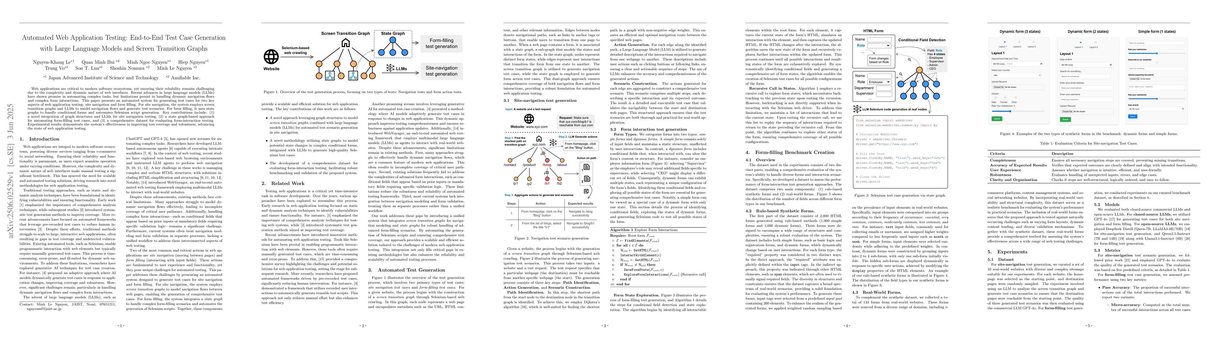 This research paper presents an automated system for generating test cases for web application testing, using large language models and graph structures to improve test coverage and robustness.