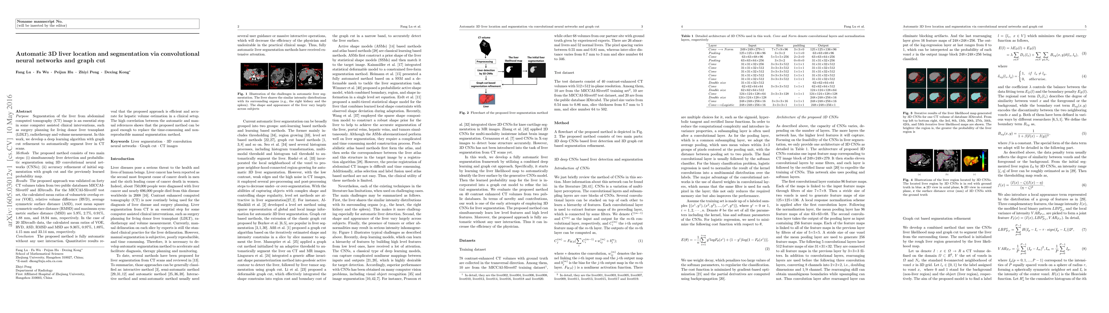 This paper presents a deep learning algorithm combining 3D convolutional neural networks and graph cut refinement to automatically segment livers from CT scans. The method shows high accuracy in volumetric overlap and surface distance metrics, demonstrating its potential to replace manual segmentation in clinical settings.