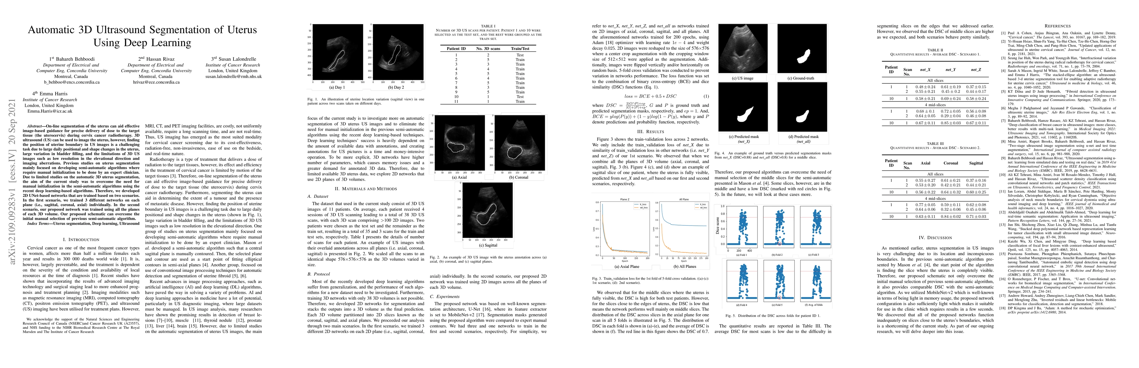 This paper develops automatic 3D ultrasound segmentation of the uterus using deep learning to eliminate the need for manual initialization in semi-automatic algorithms. The study employs 2D UNet-based networks trained on individual planes and a comprehensive 3D volume approach to achieve precise uterine boundary delineation.