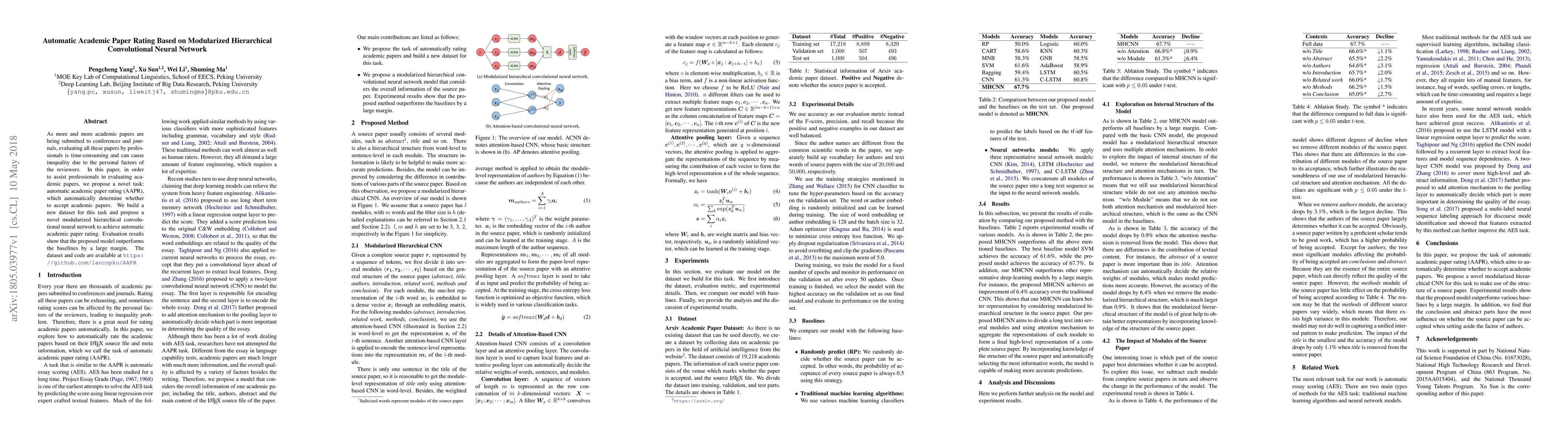 As more and more academic papers are being submitted to conferences and journals, evaluating all these papers by professionals is time-consuming and can cause inequality due to the personal factors of the reviewers. In this paper, in order to assist professionals in evaluating academic papers, we propose a novel task: automatic academic paper rating (AAPR), which automatically determine whether to accept academic papers. We build a new dataset for this task and propose a novel modularized hierarchical convolutional neural network to achieve automatic academic paper rating. Evaluation results show that the proposed model outperforms the baselines by a large margin. The dataset and code are available at \url{https://github.com/lancopku/AAPR}