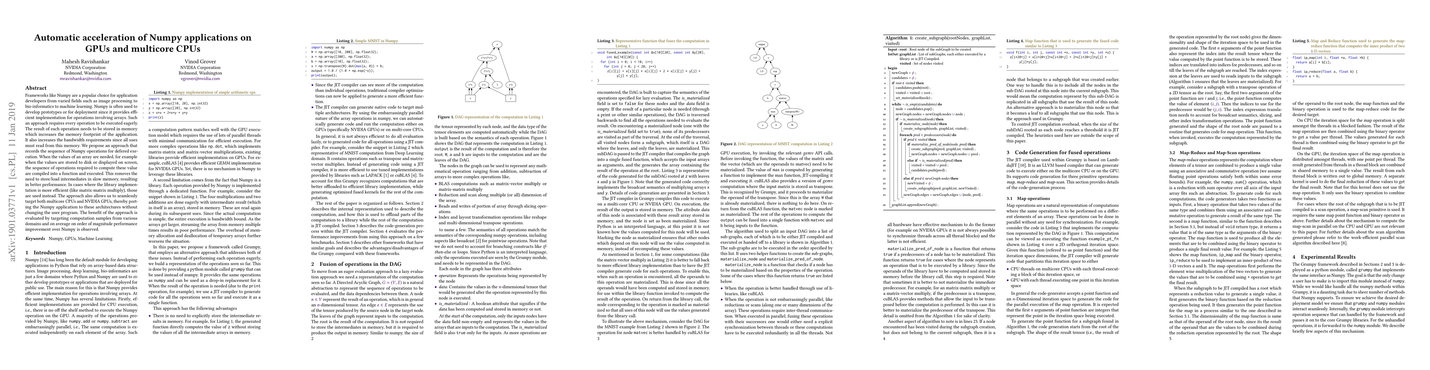 This paper proposes a method to accelerate Numpy applications by deferring execution of operations until values are needed, compiling sequences into functions for efficient computation. This approach optimizes both multicore CPUs and GPUs, achieving significant performance improvements over traditional Numpy execution.