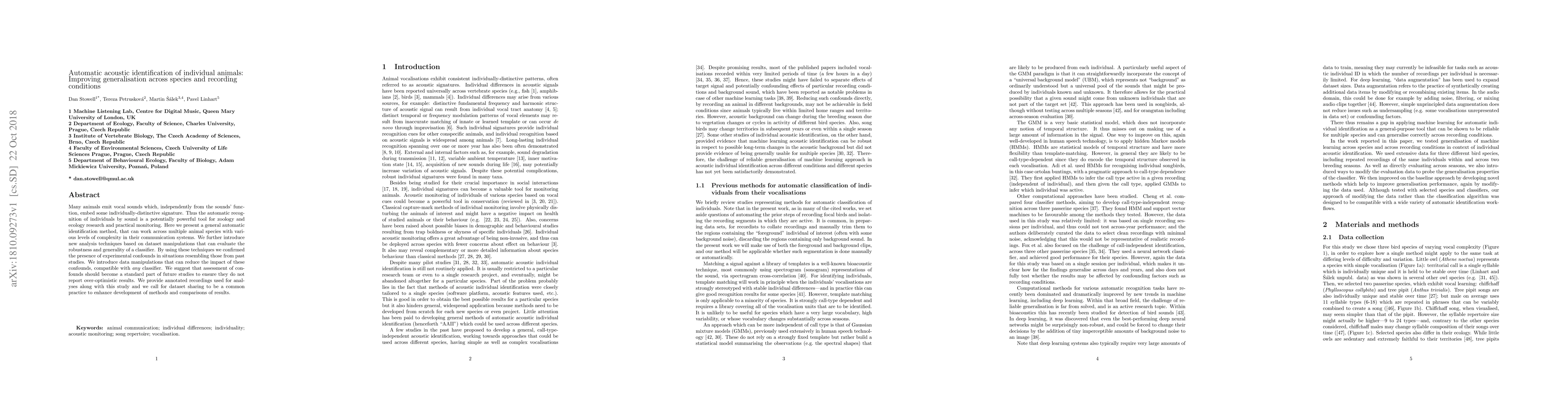 This paper presents a versatile automatic identification method for recognizing individual animals by sound, applicable across various species. It introduces new techniques to evaluate classifier robustness and highlights the importance of assessing experimental confounds to avoid over-optimistic results, advocating for dataset sharing to improve method development.