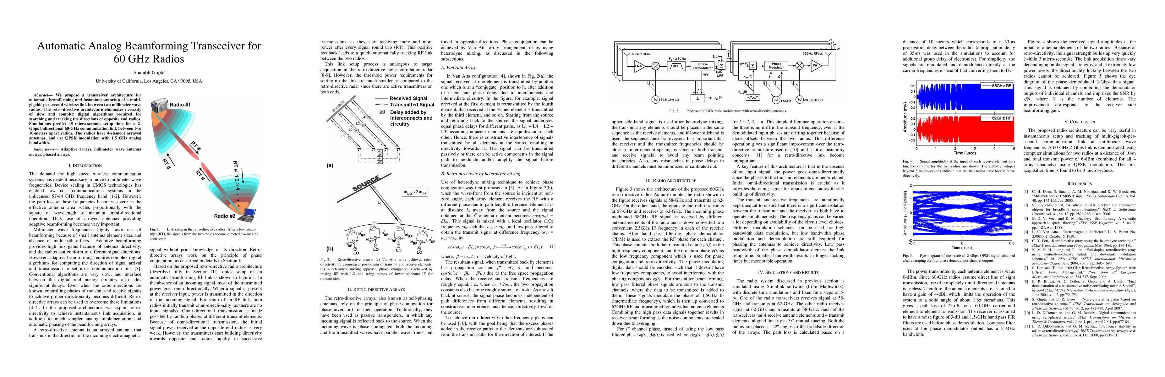 Researchers propose a new transceiver architecture that enables automatic beamforming for high-speed wireless links between millimeter wave radios, achieving setup times of under 5 microseconds.