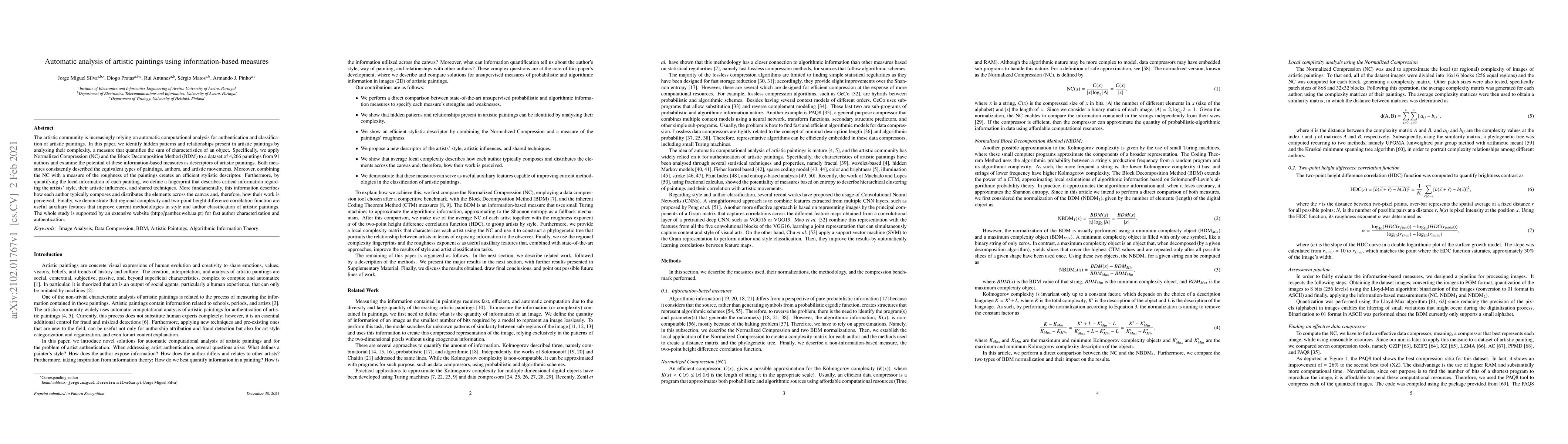 This paper explores the use of Normalized Compression and Block Decomposition Method to analyze the complexity of artistic paintings, identifying hidden patterns and relationships that describe authors, movements, and styles. The study demonstrates that combining these measures with roughness and regional complexity can enhance the classification and authentication of artworks.