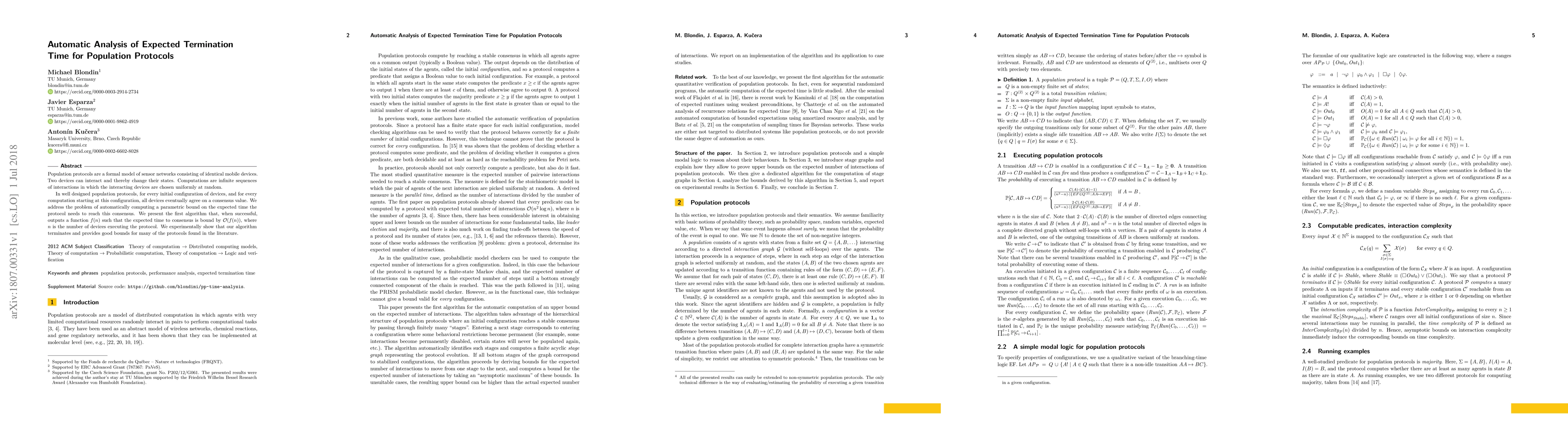 Population protocols are a formal model of sensor networks consisting of identical mobile devices. Two devices can interact and thereby change their states. Computations are infinite sequences of interactions in which the interacting devices are chosen uniformly at random. In well designed population protocols, for every initial configuration of devices, and for every computation starting at this configuration, all devices eventually agree on a consensus value. We address the problem of automatically computing a parametric bound on the expected time the protocol needs to reach this consensus. We present the first algorithm that, when successful, outputs a function f(n) such that the expected time to consensus is bound by O(f(n)), where n is the number of devices executing the protocol. We experimentally show that our algorithm terminates and provides good bounds for many of the protocols found in the literature.