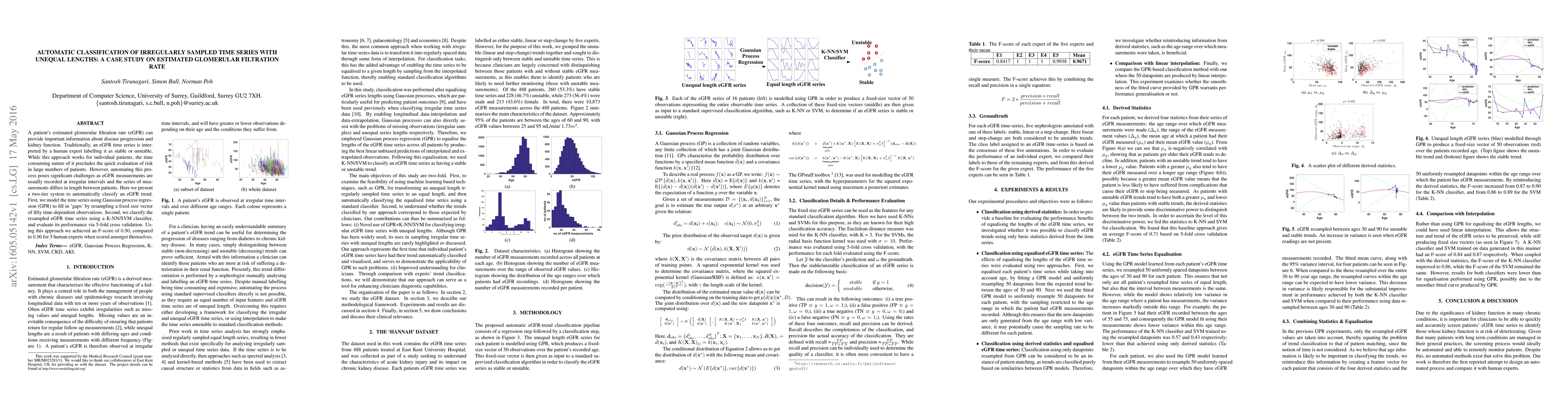 Researchers developed an automatic method to classify patient kidney function based on irregularly sampled time series data, achieving high accuracy comparable to human expert evaluations.