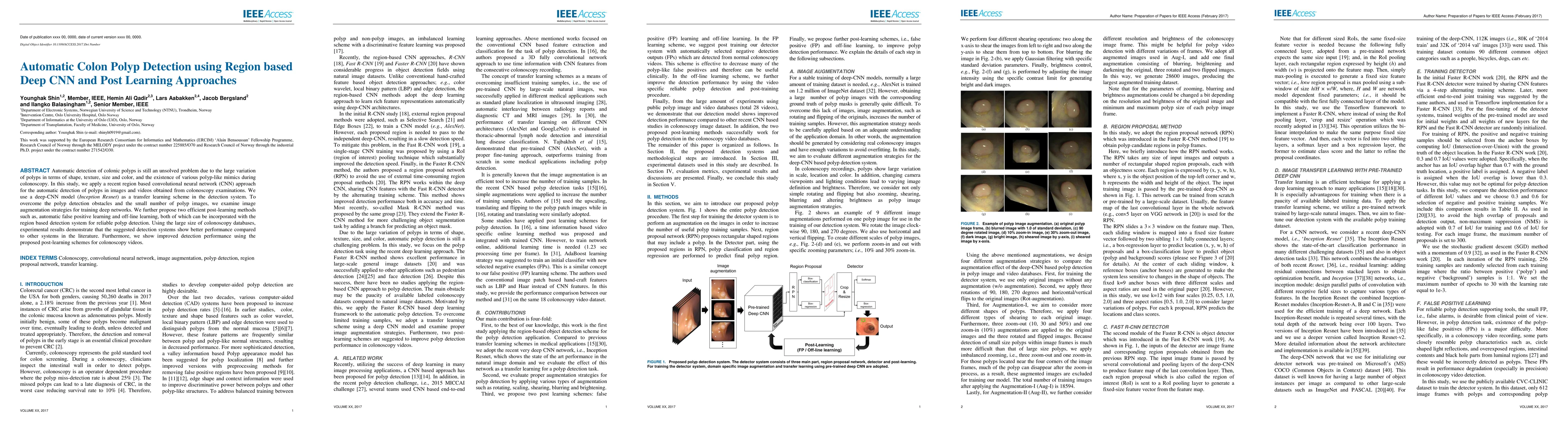This paper proposes an automatic colon polyp detection system using a region-based deep CNN with transfer learning and image augmentation. It introduces post-learning methods to enhance detection reliability, showing improved performance over existing systems in colonoscopy image and video datasets.